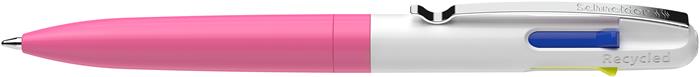 Golyóstoll, 0,5 mm, nyomógombos, négyszínű, SCHNEIDER "Take 4 Neon", rózsaszín-fehér