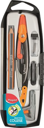 Körző készlet, 5 darabos, MAPED "Metal Open", vegyes színek