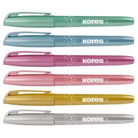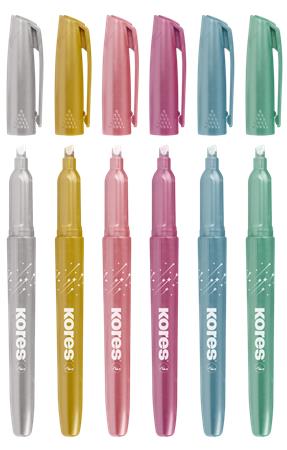 KezdőlapIrodaszerekÍrószerekSzövegkiemelőkSzövegkiemelő készlet, 3-5 mm, KORES "Glitter", 6 különböző csillámos szín