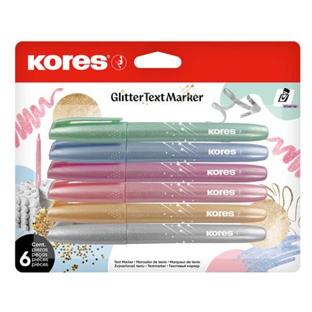 Szövegkiemelő készlet, 3-5 mm, KORES "Glitter", 6 különböző csillámos szín